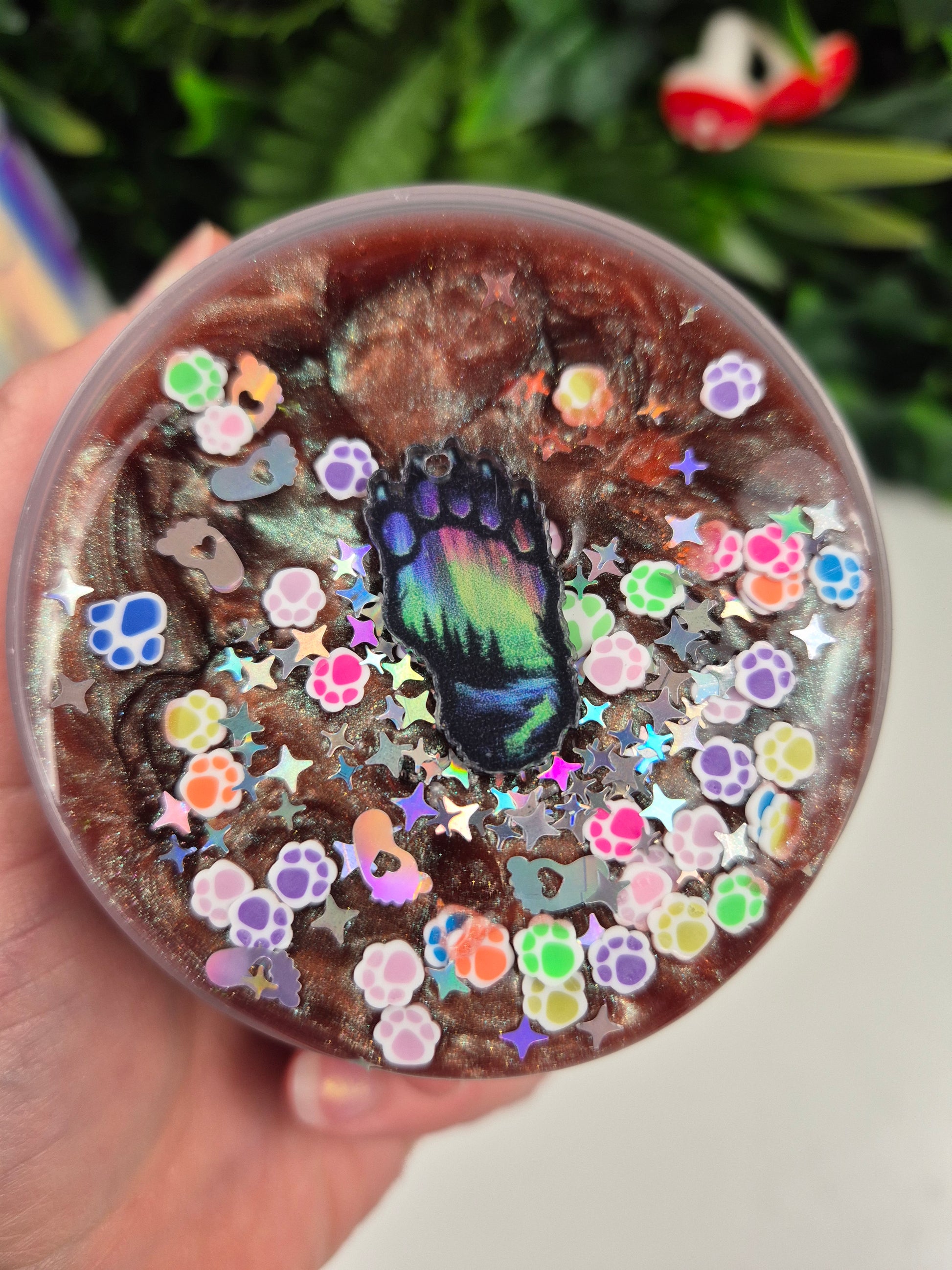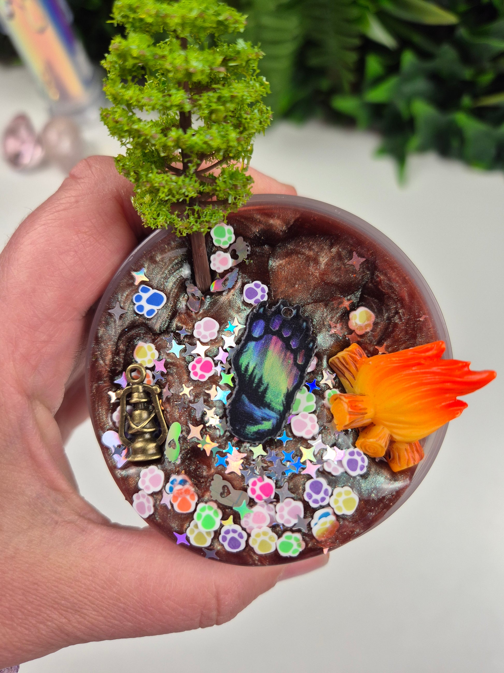 Optional: 1x tree charm, 1x fire pit charm, 1x metal oil lamp charm, 1x big foot charm, baggie of foot print sprinkle mix