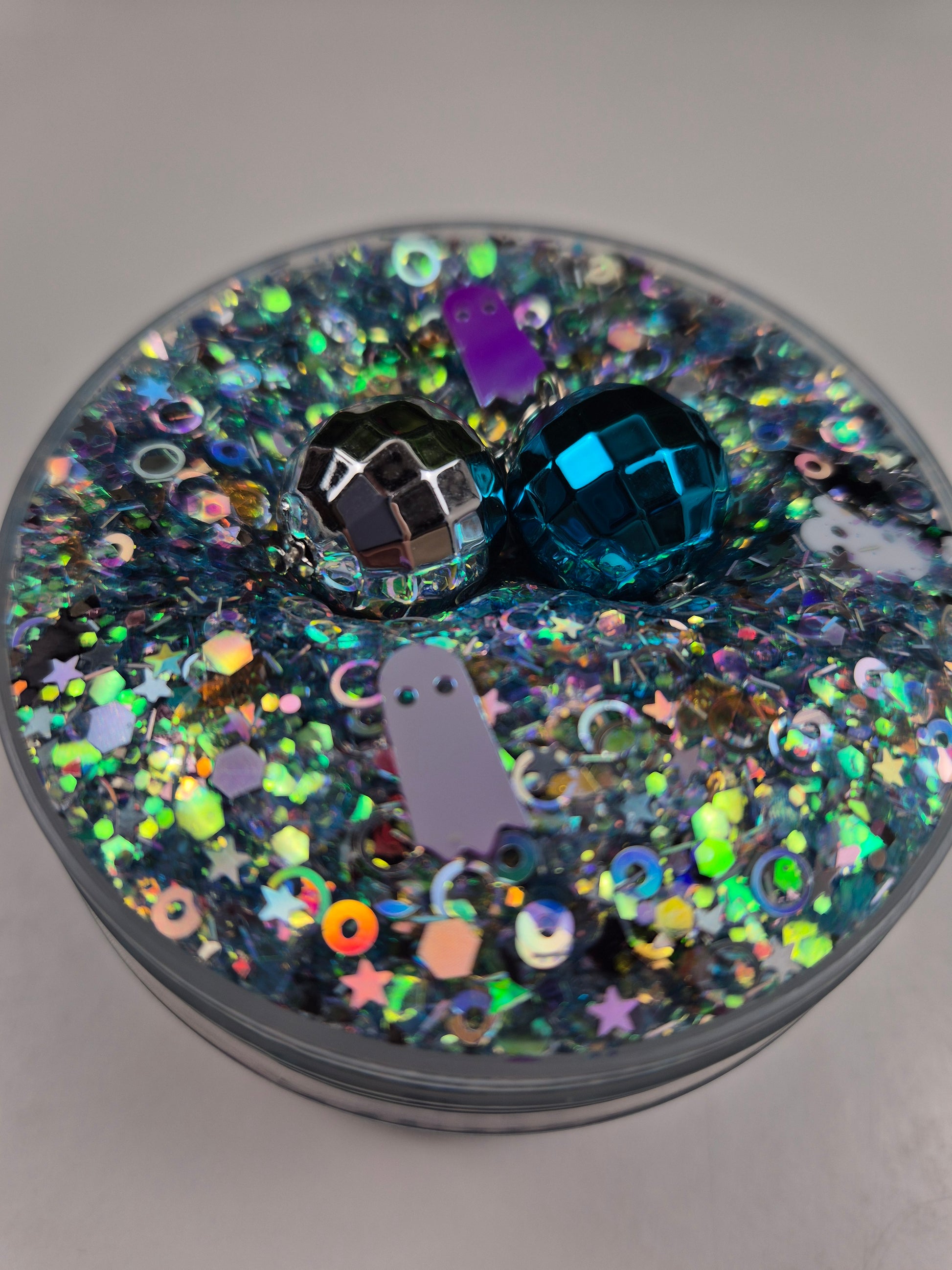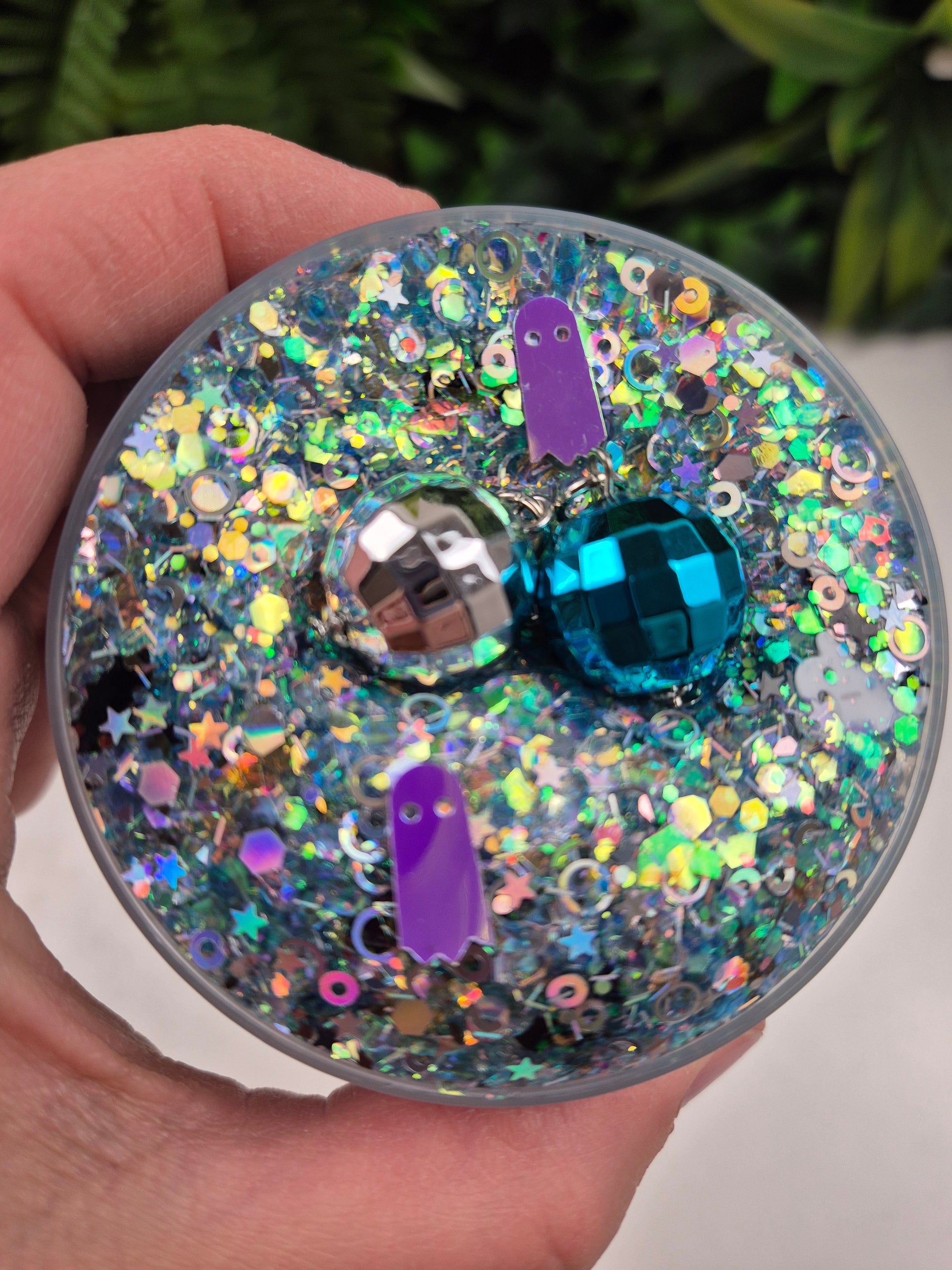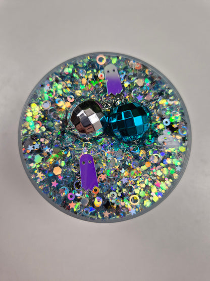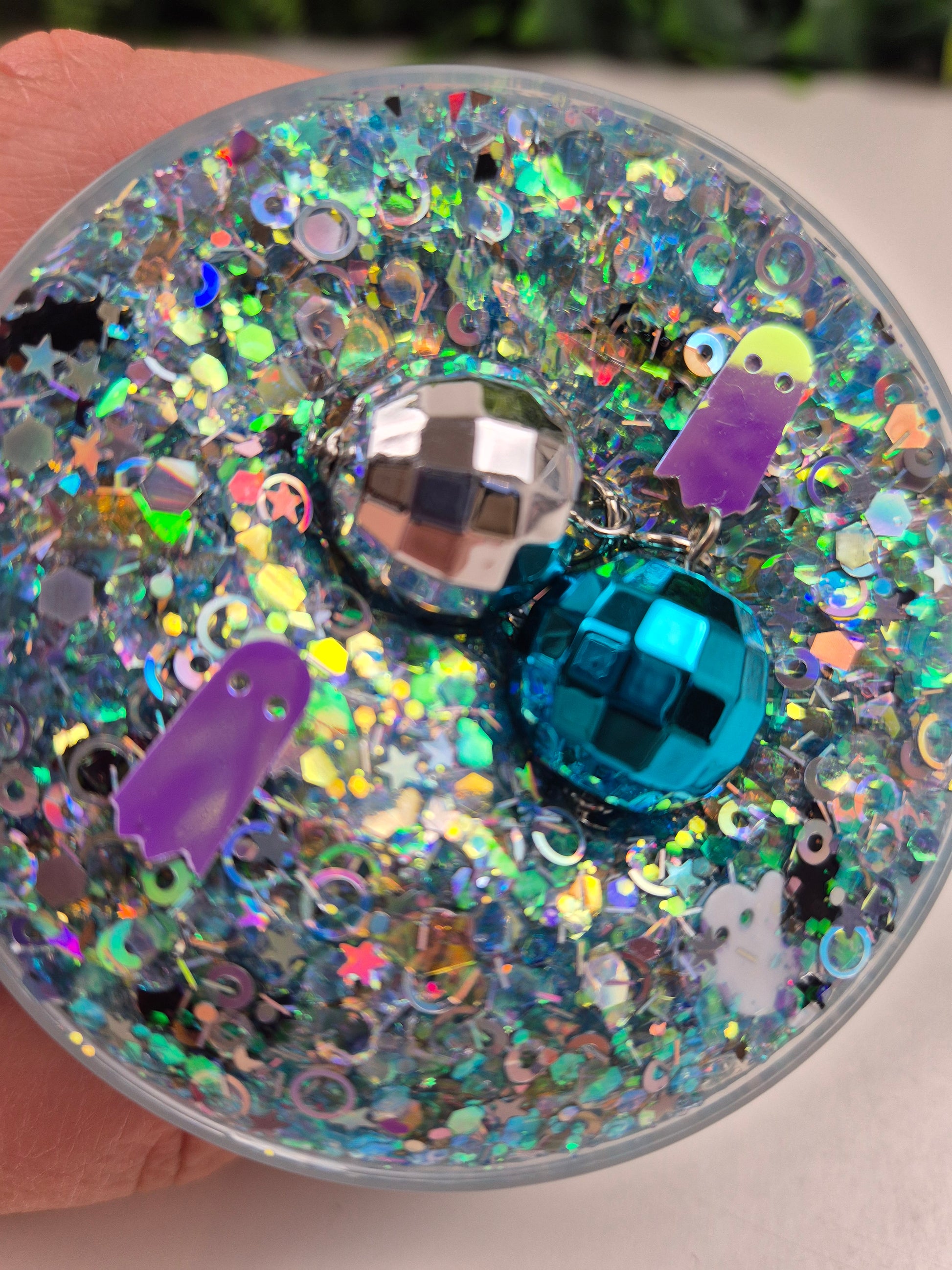 Included: 2x Disco ball charms (random colours chosen), 2x holographic ghost sequins
