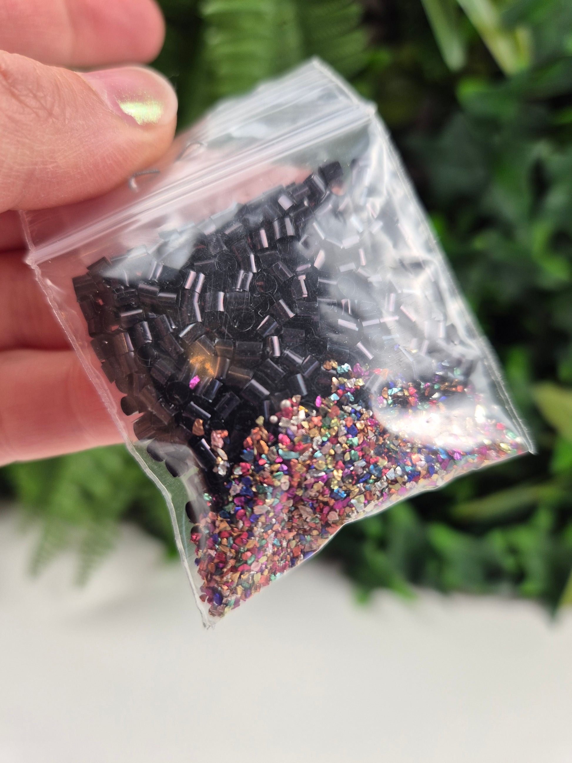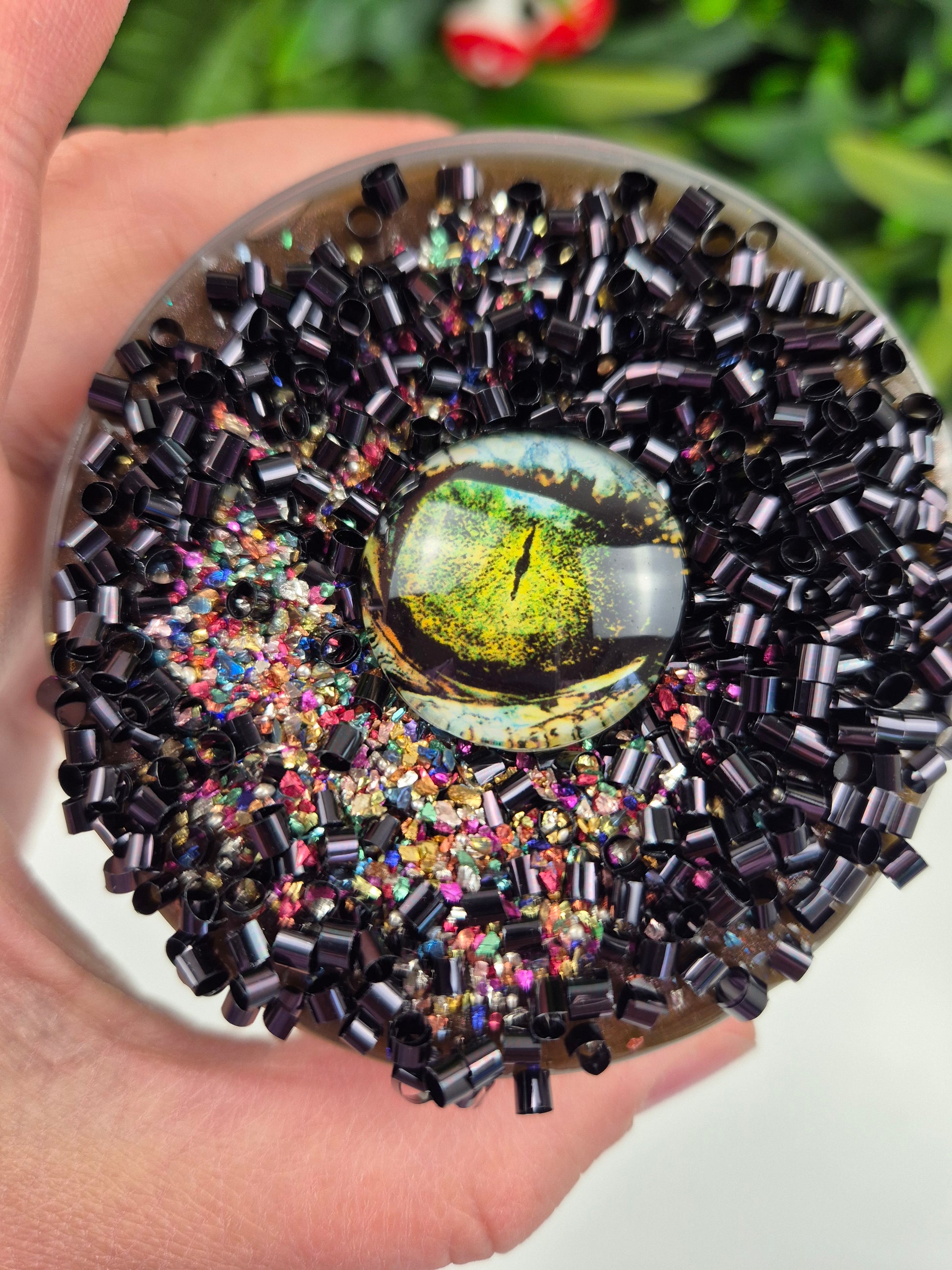 Included: Glass eye cabochon + Baggie of Micro Rainbow Gravel + Black Bingsu