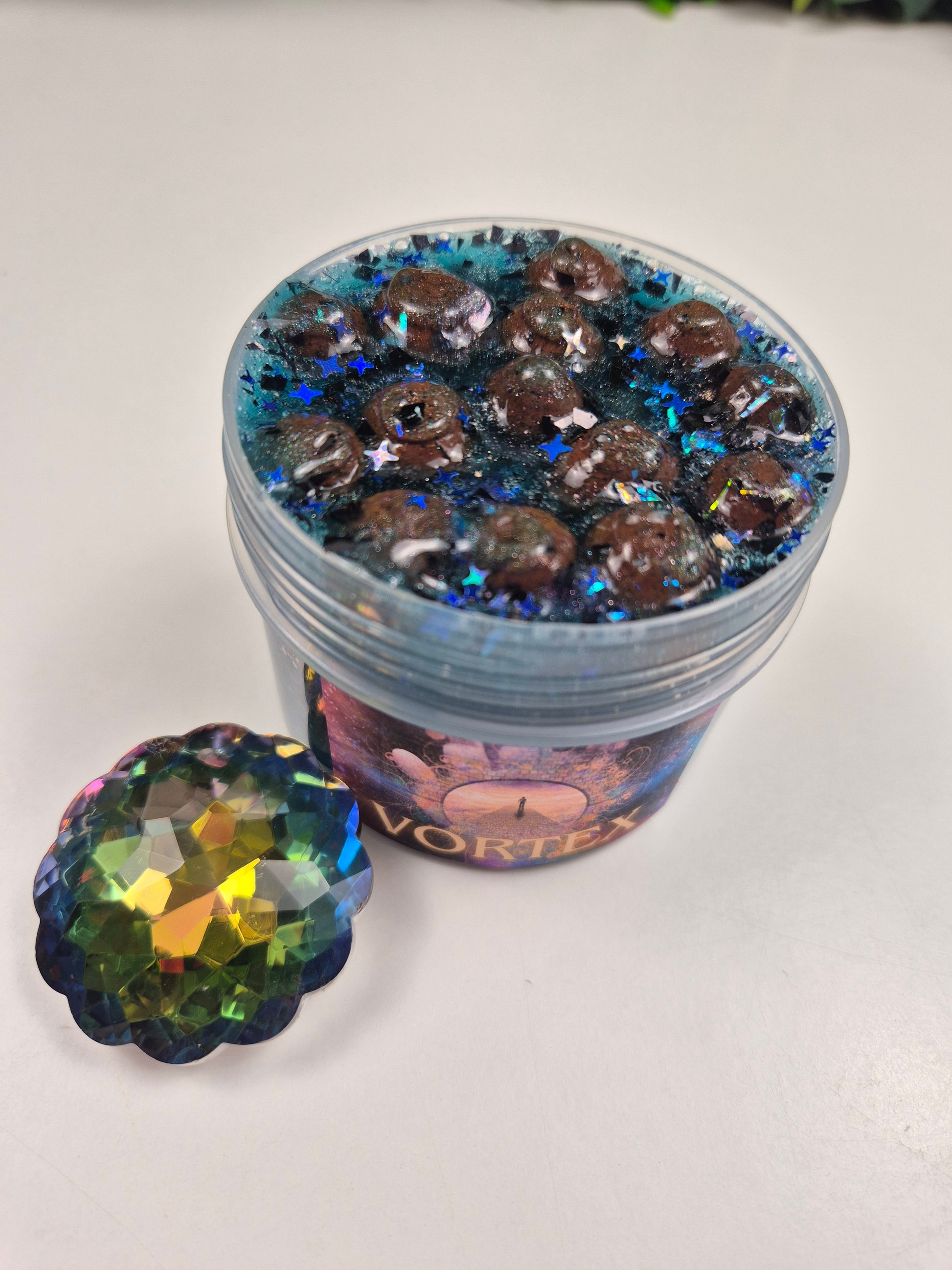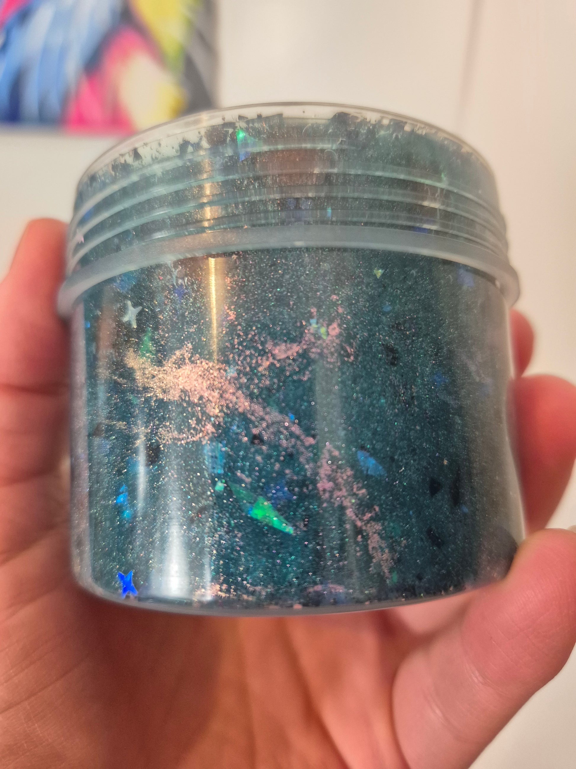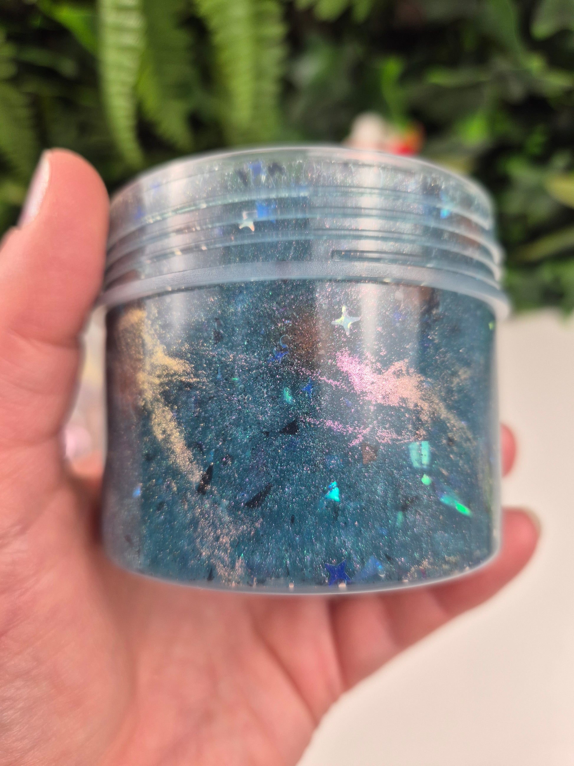 Description: An enchanting and magical coated clear pebble slime with gorgeous chameleon colour shifting pigments and holographic sequins/sugar paper mix. The pebbles are filled about half way so you can choose to have more of a crunchy texture and the croaky sound these pebbles make as they rub against each other. Or opt for a smoother play with more stretch and pops and keep the other half of clear in.